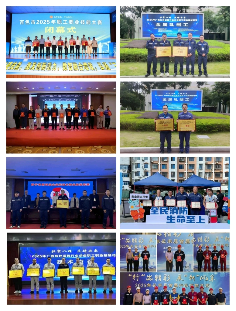 在2025年“中国铝业杯”第十八届全国有色金属行业职业技能竞赛电解工项目中,广西铝业集团参赛队凭借扎实技艺与稳定发挥,斩获团体优秀奖,三名选手分别取得个人赛第6、第9、第14名。在广西金属轧制工大赛中拿下团体冠亚军和个人前三名,在行业赛中斩获团体冠军、季军和个人前五名。在广西电解工大赛中获团体赛一等奖、二等奖,个人赛中有8名选手进入前10名,在行业赛中获团队二等奖、三等奖。在广西电子信息行业职工职业技能大赛计算机及外部设备装配调试员竞赛中,包揽该项比赛前三名,另有2名选手获优胜奖。在广西数控车工大赛中斩获个人赛冠军。在广西质量管理员竞赛中获个人赛冠军,在广西质检员竞赛中获个人赛亚军。在广西电工、仪表仪器维修工中分别有1名选手进入前十名。在甘肃省百万职工劳动和技能竞赛中,6人获甘肃省技术标兵荣誉称号。