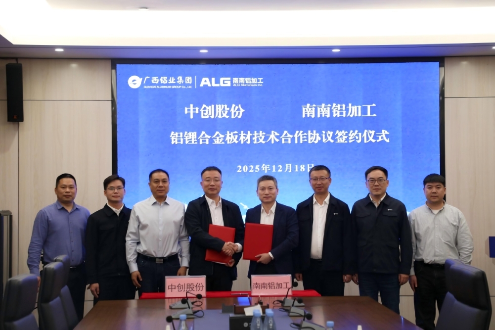 2025年12月18日,广西南南铝加工有限公司与湖南中创空天新材料股份有限公司合作洽谈会在南南铝加工顺利召开。双方聚焦第三代铝锂合金研发与产业化攻坚,展开深度磋商并完成签约,此举标志着两家企业的合作迈入全新阶段,为我国航空航天关键材料供应链升级注入强劲动能。
