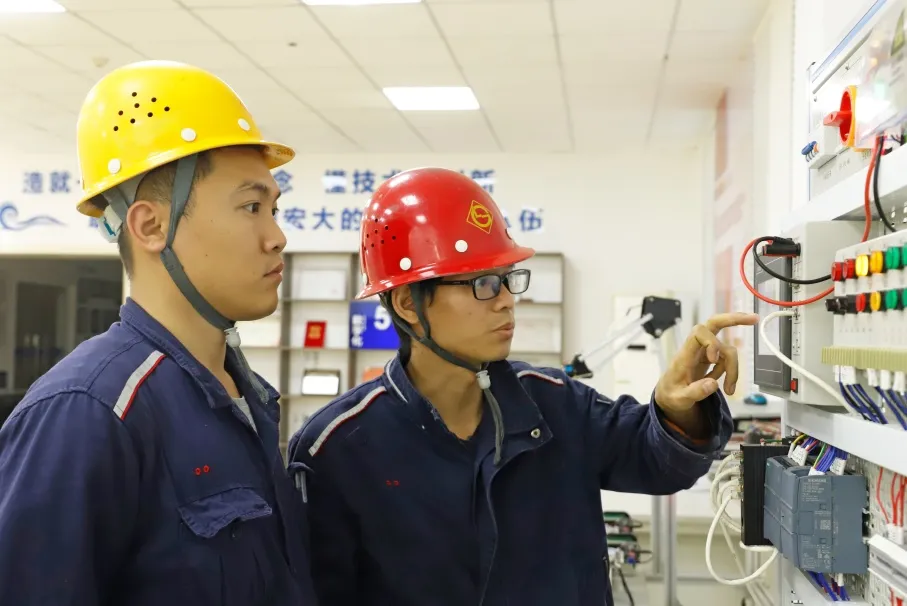 从PLC自动控制开发编程、频谱图分析、故障精准定位到实操流程规范,黄德文逐个环节拆解技巧,开展竞赛模拟及心理压力场景演练,帮助徒弟攻克技术难点、调适心态。