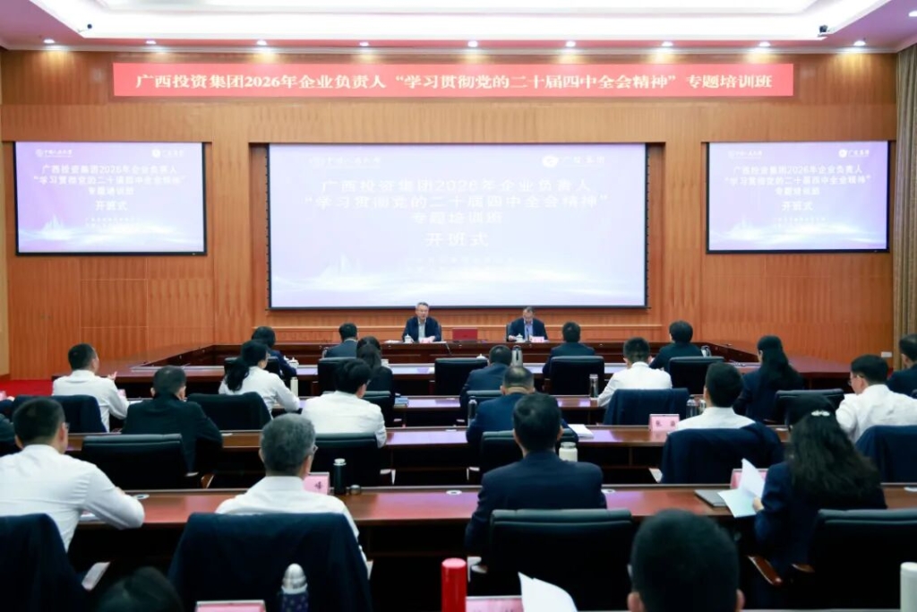 3月23日,广投集团2026年企业负责人“学习贯彻党的二十届四中全会精神”专题培训班在中共广西区委党校开班。此次培训深入实施人才强企战略,将投资于物和投资于人紧密结合,动员集团中高层领导干部牢固树立和践行正确政绩观,持续提升政治理论素养、政策理解能力、宏观战略视野和廉洁合规意识,为集团“十五五”良好开局奠定基础。集团党委书记、董事长周炼作开班讲话。